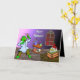 Um desenho animado e louco monstro cientista é apresentado neste cartão coloridamente assustador de Halloween. Um crânio assustador sobre uma mesa de madeira cremosa, uma janela assustadora de Halloween e um fundo roxo escuro completam a design. Um excelente de dizer Feliz Dia das Bruxas. Personalize alterando as mensagens nos campos de texto para mostrar suas informações pessoais. Feliz Dia das Bruxas!