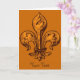 Se você quer algo além de abóboras, fantasmas, vampiros e bruxas para o Halloween, experimente um ouro laranja Fleur de lis design num cartão desenhado personalizado.