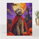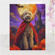 Cartão Halloween Goldendoodle Vampire Pumpkins assustado