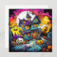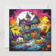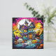 Esta placa apresenta uma moradia assombrada após escurecer. Sinta-se à vontade para editar o texto para tornar este cartão de Dia das Bruxas pessoal e de algum tipo.