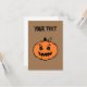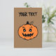 Cartão de férias personalizado com modelo de animação de abóbora para o Dia das Bruxas. Vazio atrás para mensagens escritas à mão.