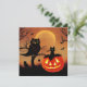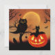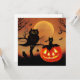 Cartão Halloween Kürbis, Eule und Katze bei Nacht.
