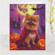 Cartão Halloween Pomeranian Vampiro Pumpkins assustado