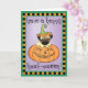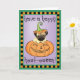 Mande saudações de Halloween com este cartão de um cachorrinho fofo num sorridente Jack-o-Lanterna. Excelente para crianças de todas as idades que amam Pugs e Halloween. Tenha uma boa HOWL-oggy!