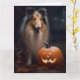 Cartão Halloween Rough Collie Com Pumpkins Assustado