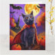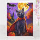 Cartão Halloween Russo Blue Cat Vampiro Pumpkins assustad