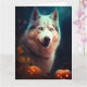 Cartão Halloween Siberian Husky Com Pumpkins Assustado