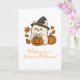 Deze kaart combineert schattige illustratie, seizoensgebonden humor, en een feestelijke boodschap – ideaal om een warme en vrolijke Halloweenwens over te brengen.