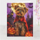 Cartão Halloween Yorkipoo Vampiro Pumpkins assustado