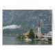 Uma vista matinal nebulosa através do Hallstatter See até à aldeia de Hallstatt