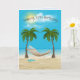 Hammock pendurado entre duas palmeiras com estrelas-do-mar e flip-flops na areia da praia do oceano com nuvens de verão no 37º aniversário. A idade pode ser alterada.