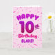 Celebrate their 10th birthday with a bright, cheerful, and personalizable birthday card! This custom name birthday card features a bold number ten balloon and colorful confetti.