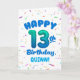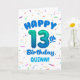 Celebrate their 13th birthday with a bright, cheerful, and personalizable birthday card! This custom name birthday card features a bold number thirteen balloon and colorful confetti.