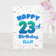 Celebrate their 23rd birthday with a bright, cheerful, and personalizable birthday card! This custom name birthday card features a bold number twenty-three balloon and colorful confetti.