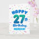 Celebrate their 27th birthday with a bright, cheerful, and personalizable birthday card! This custom name birthday card features a bold number twenty-seven balloon and colorful confetti.