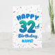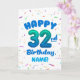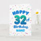 Celebrate their 32nd birthday with a bright, cheerful, and personalizable birthday card! This custom name birthday card features a bold number thirty two balloon and colorful confetti.