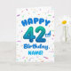 Celebrate their 42nd birthday with a bright, cheerful, and personalizable birthday card! This custom name birthday card features a bold number forty two balloon and colorful confetti.