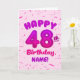 Celebrate their 48th birthday with a bright, cheerful, and personalizable birthday card! This custom name birthday card features a bold number forty eight balloon and colorful confetti.