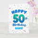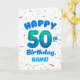 Celebrate their 50th birthday with a bright, cheerful, and personalizable birthday card! This custom name birthday card features a bold number fifty balloon and colorful confetti.
