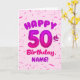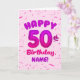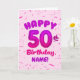 Celebrate their 50th birthday with a bright, cheerful, and personalizable birthday card! This custom name birthday card features a bold number fifty balloon and colorful confetti.