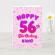 Celebrate their 56th birthday with a bright, cheerful, and personalizable birthday card! This custom name birthday card features a bold number fifty-six balloon and colorful confetti.