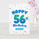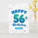 Celebrate their 56th birthday with a bright, cheerful, and personalizable birthday card! This custom name birthday card features a bold number fifty-six balloon and colorful confetti.