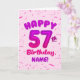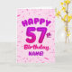 Celebrate their 57th birthday with a bright, cheerful, and personalizable birthday card! This custom name birthday card features a bold number fifty-seven balloon and colorful confetti.