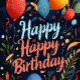 Bright, bold, and bursting with party energy — this Happy Happy Birthday card is made to make someone’s special day feel unforgettable. The deep, dramatic background sets the stage for a lively explosion of colorful balloons, confetti, streamers, and festive leaves, creating a design that feels joyful the moment it’s opened.