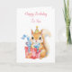 A sweet birthday card for her, with a watercolor squirrel in a birthday hat holding a gift. Inside is a sweet message wishing someone a birthday full of surprises!