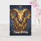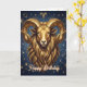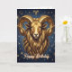 Aries Birthday card. A beautiful ai illustration of a golden Ram with a dark blue astrology background. Inside is the traits of an Aries, a birthday poem, all of which can be edited by you in the personalize area.