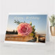 Happy Birthday, May your day be as beautiful as you are. Rose auf Geländer mit Himmel im Hintergrund.