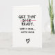 This greeting card features a stark white background with thick black lettering arranged like a quick note between close friends, setting a teasing, flirty tone. The top line reads “GET THAT DICK READY,” and the word “DICK” is crossed out with a single red, hand-drawn strike that feels like a sudden, embarrassed correction. Just beneath, “SORRY I MEAN,...” appears in the same black lettering, spaced like a pause before the joke lands. The final line, “HAPPY EASTER,” sits lower and larger, still in black, giving the message a sweet turn after the cheeky start 🌷. The simple layout leaves lots of open space, making the black text and that one red line stand out sharply. A tiny black heart near the bottom adds a soft, affectionate touch, like a wink after a daring remark 🐰. The only color accents are the red strike through the crossed-out word and the small black heart at the bottom.