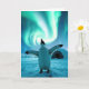 A joyful Arctic penguin is captivated by the breathtaking spectacle of the Northern Lights, with a cozy igloo standing in the background.