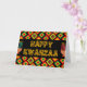 Cartão de saudação FELIZ, colorido e vibrante, do KWANZAA em vermelho, amarelado e verde. Os designs mostram um padrão de quadrados coloridos e meia imagem das velas Kwanzaa Nguzo Saba. Este cartão Kwanzaa seria um presente excelente para a família, amigos e clientes durante a estação Kwanzaa. Escolha entre uma ampla seleção de cartões Kwanzaa, decoração doméstica e presentes, projetados por Designs Bereanos.