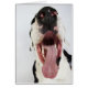 Cartão Harlequin Great Dane com boca aberta, perto.