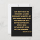 Este cartão de saudação mostra um design que apresenta uma fonte Normal de Frankfurter com letras coloridas ouros que mostra o verso da bíblia KJV "Hebrews 8:6" sobre um fundo negro deste tema baseado na fé. Este verso está referindo o 8º capítulo do Livro de Hebraicos mostrando o verso 6 neste tema de citação de bíblia da bíblia Rei James com as palavras "A Vontade de Deus!" nas costas. Feita com impressão colorida de alta qualidade em um papel de 3,5" x 5" (retrato) ou 5" x 3,5" (paisagem), feito e impresso nos EUA.