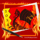 Helly Aa, carta de saudação do festival de fogo de Shetland com uma cozinha Viking na design de fogo. Adicione o ano no cobrir. Uma celebração com um tema nórdico escandinavo, realizada no final de janeiro. Arte, imagem e direitos de autor versos © Shoaff Ballanger Studios, 2023.