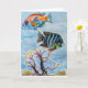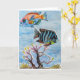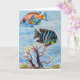 Colorful tropical fish swim above coral that, in a magical universe, have coral with lighted birthday candles on top. This is a great card for nature lovers and/or fisher people.