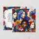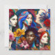 Ótimo cartão de saudação inspirador para uso pessoal ou empresarial promover a igualdade das mulheres. Uma colagem abstrata diversificada de mulheres e o texto, "IWD" e "Dia Internacional da Mulher". 8 de março é o Dia Internacional da Mulher. O verso do cartão tem uma breve história sobre o Dia Internacional da Mulher.