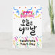 Um cartão de aniversário animado e colorido com caligrafia coreana que diz “오늘은 너의 날” (Hoje É Seu Dia). Repleto de confetes e energia de celebração, é perfeito para tornar o dia de alguém verdadeiramente especial.
