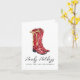 Estes cartões de natal apresentam um retrato em aquarela de um par de botas de vaqueira vermelha com a legenda "feriados moderados".