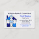Cartão home de vista profissional do reparo/indústria da construção feito no branco, na parte dianteira, com texto azul feito sob encomenda. Os gráficos de uma casa do quebra-cabeça decoram o lado esquerdo do cartão. A parte traseira é feita no azul contínuo, com texto feito sob encomenda branco. Personalize todo o texto para sua indústria da construção home.