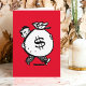 O cartão perfeito para enviar dinheiro ou doações para amigos, familiares, crianças, instituições de caridade e mais, este simples design retrô apresenta uma ilustração estilizada de um homem carregando uma grande bolsa de dinheiro e um fundo vermelho vibrante. O cartão é deixado intencionalmente em branco por dentro para que você possa escrever à mão sua mensagem ou texto, ou você pode optar por editar o interior e adicionar texto digitalmente. Há muitas maneiras de usar este cartão, você vai querer encomendar vários para ter à mão para aqueles momentos em que deseja enviar dinheiro.