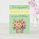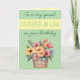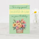 Celebre sua incrível nora com este lindo cartão de aniversário da margarida Gerbera! Com flores vibrantes e alegres, esta design corajosa é perfeita para mostrar seu amor e apreço. A escritura elegante lê "Para uma Filha-de-Direito Muito Especial", fazer que seja uma escolha criteriosa para o seu dia especial. Seja ela brilhante e espumante ou doce e gentil, este cartão floral é uma forma adorável de desejar felicidade, amor e alegria a ela. Ideal para desejos de aniversário personalizados, este cartão fará com que ela se sinta amada. Peça agora e faça seu aniversário especial! Verde / Amarelo