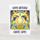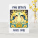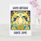 Cartão de Aniversário Personalizado Lindos gêmeos Gemini cercados por estrelas e flores em amarelo e azul. Bonito arte celestial eetérea do zodíaco.