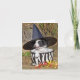 Um cartão original do Dia das Bruxas. Os filhotes de cachorro de border collie são tão bonitos e o que poderia ser mais bonito do que um vestido em um chapéu das bruxas e no estalo fora de um mini caldeirão que deseja o e seus amigos um "Howloween feliz"
