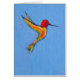 Hummingbird pintado em cores tropicais num fundo azul-céu.