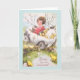 Cartão húngaro retro/do vintage páscoa. Menina adorável que conduz um cheio do carro de pintinhos do bebê! Ünnepeket do húsvéti de Boldog! Felz pascoa