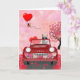 Cartão Husky Siberiano Dirigindo Carro com Corações de Sã