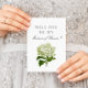 Um cartão de apresentação para a sua matriz de honra, este cartão branco moderno apresenta uma ilustração antiga, branca e verde, do sistema de flores de hydrangea, com texto clássico e fácil de personalizar, permitindo que você escolha como "propor" aos membros do seu partido.